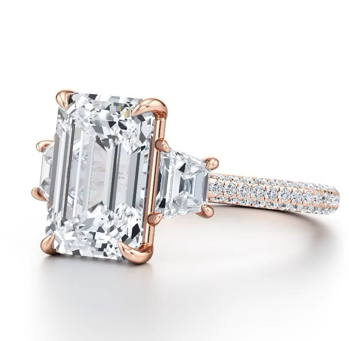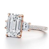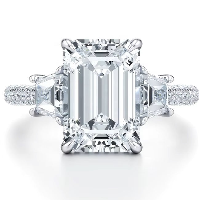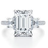 4.0 Carat Emerald-Cut 4- Claw Claster Band Moissanite Engagement Ring