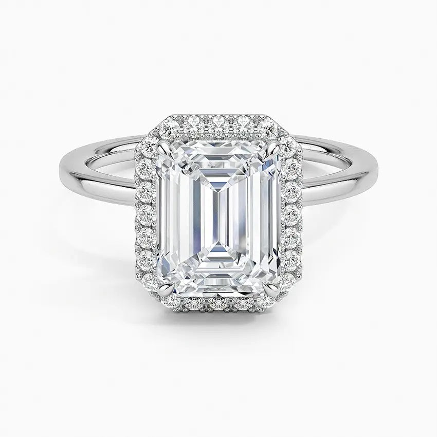 Halo Emerald Cut Engagement Ring -ApolloGem