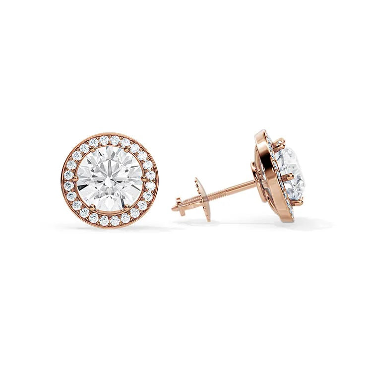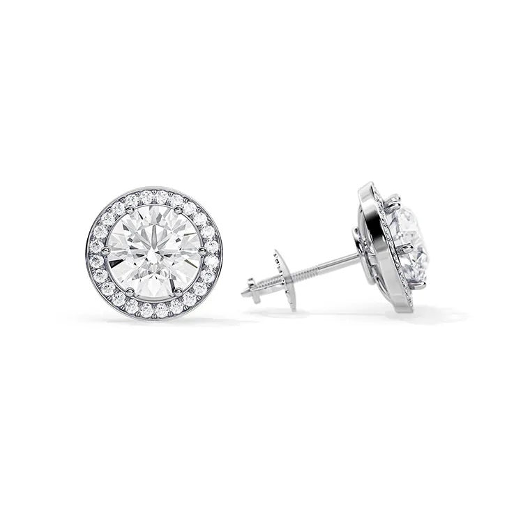 Elegant Styled Moissanite Round Halo Earrings for everyday use.