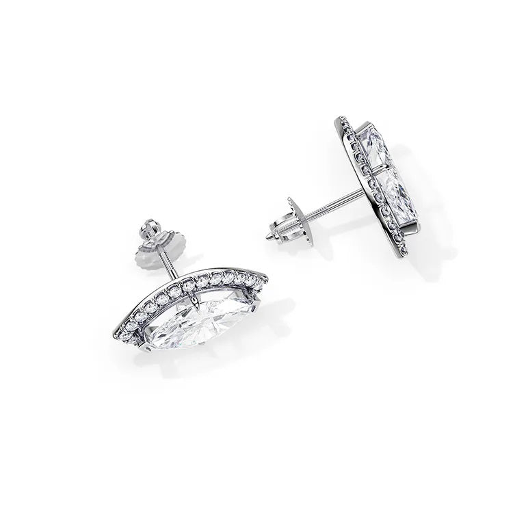 Elegant Styled Moissanite Marquise Halo Earrings for everyday use.