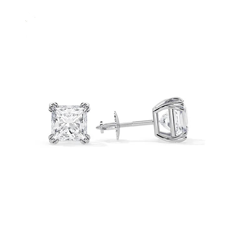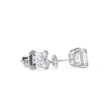 9ct Moissanite 1.0ct Princess Solitaire Double Claw Stud Earrings
