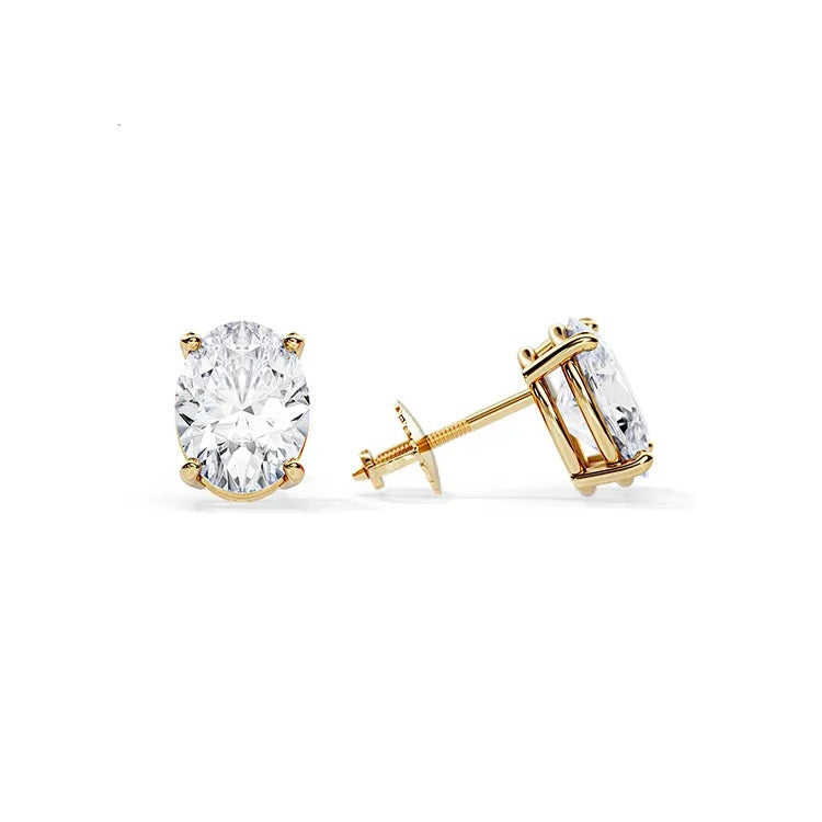 9ct Moissanite 1.0ct Oval Solitaire 4-Claw Stud Earrings