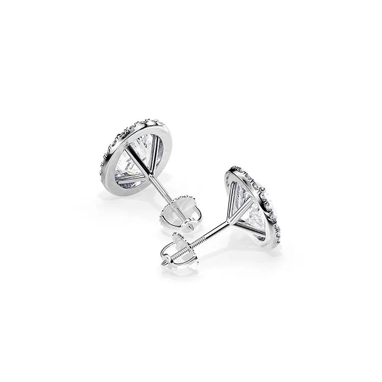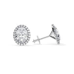 Elegant Styled Moissanite Oval Halo Earrings for everyday use.