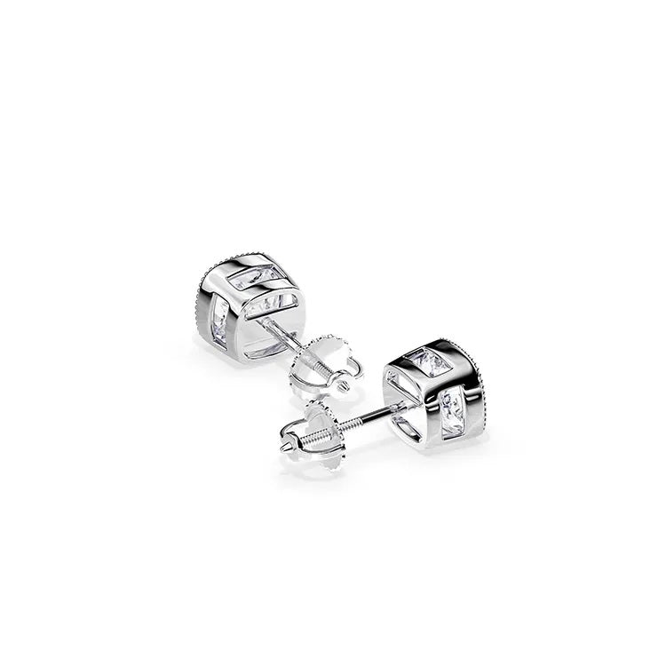 Elegant Styled Moissanite Cushion Tube Stud Earrings for everyday use.