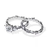 Round Moissanite: The centerpiece of this bridal set is a round moissanite, renowned for its exceptional brilliance and timeless beauty. The round cut enhances the stone's natural sparkle, creating a breathtaking focal point.