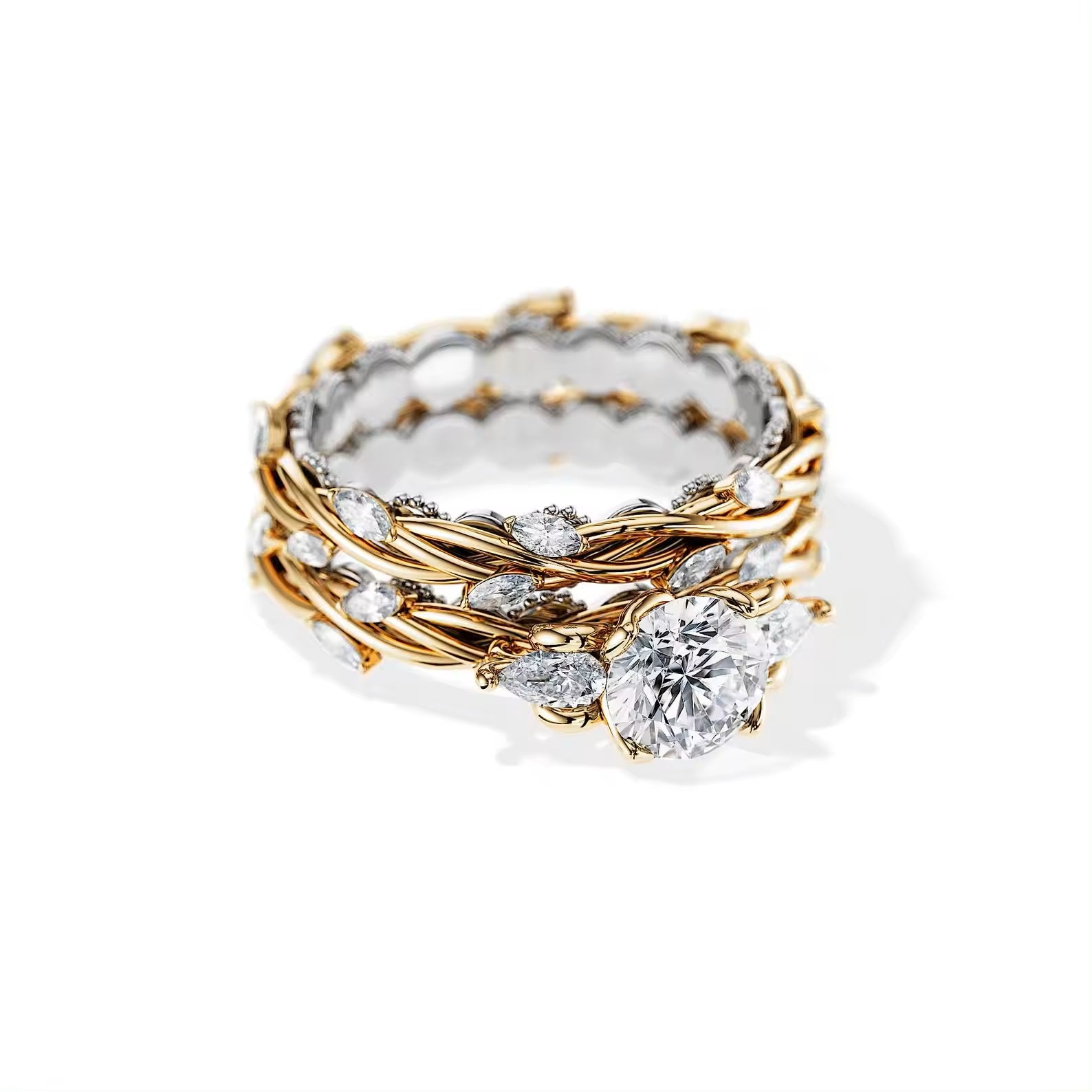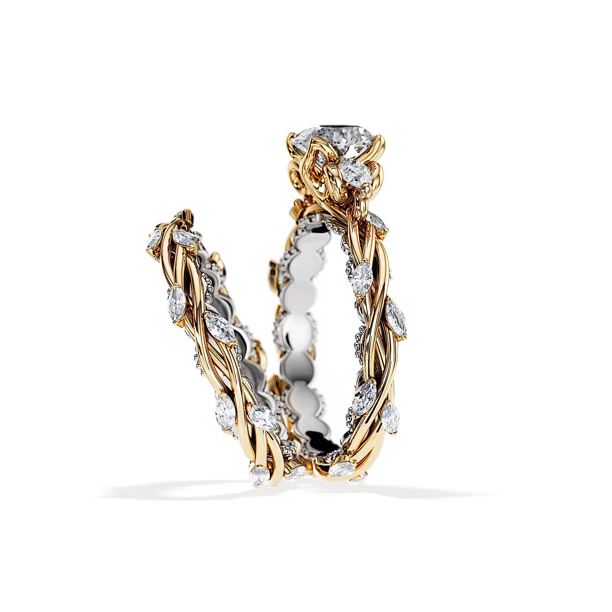 Elegant and Unique Two-Tone Bridal Set with Ornate Band – ApolloGem