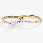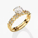 Celebrate your love with our Elegant Engagement and Wedding Ring Set. This exquisite set features a beautiful engagement ring with round brilliant-cut moissanite in the center, surrounded by smaller stones along the band, and a complementary wedding band adorned with smaller moissanite stones. Expertly crafted by ApolloGem, this set epitomizes luxury and elegance, making it the perfect symbol of your enduring love.