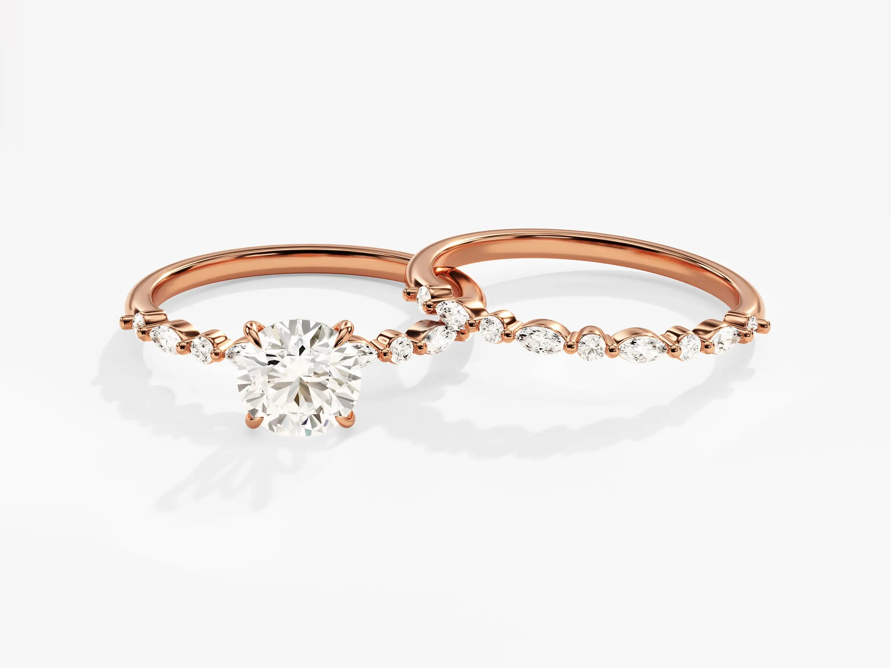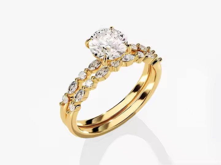 Gold Band: The band is available in yellow gold, white gold, or rose gold, matching the engagement ring for a unified and elegant appearance.