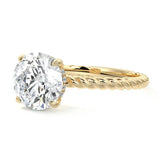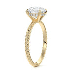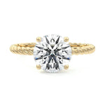 Gold Band: Available in yellow gold, white gold, or rose gold, the band is meticulously crafted to perfection, providing a timeless yet contemporary look that beautifully complements the round-cut center stone.