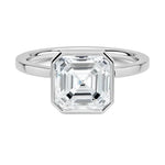 Elevate your engagement with our Asher-Cut Bezel Setting Moissanite Engagement Ring, featuring a dazzling Asher-cut Moissanite. Expertly crafted by ApolloGem, this exquisite ring showcases a sleek bezel setting, highlighting the pure brilliance of the moissanite stone. Made from premium gold, this Asher-cut engagement ring epitomises luxury and elegance, making it the perfect symbol of your enduring love.