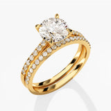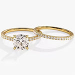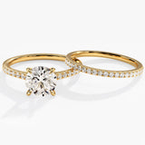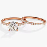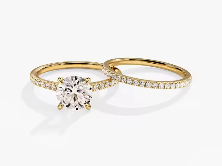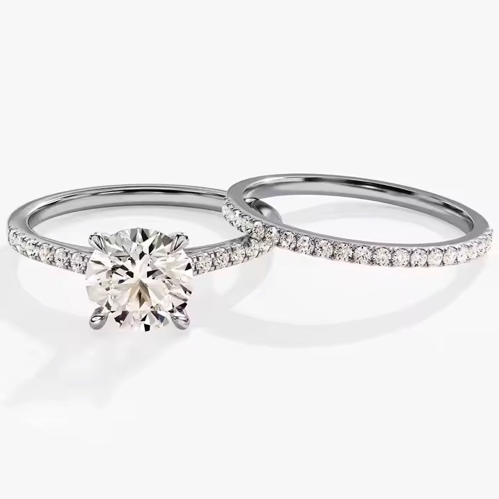 Celebrate your love with our elegant Engagement Ring Set. Expertly crafted by ApolloGem, this stunning set features a brilliant round moissanite engagement ring paired with a delicate half-eternity wedding band, epitomizing timeless beauty and sophistication.