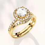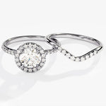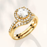 Celebrate your love with our exquisite Vintage Halo Moissanite Diamond Bridal Set. Expertly crafted by ApolloGem, this stunning bridal set features a brilliant round moissanite set in a classic halo setting, paired with a unique curved wedding band. This set epitomizes timeless elegance and sophistication.