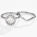 Vintage Halo Moissanite Diamond Bridal Set with Curved Wedding Band