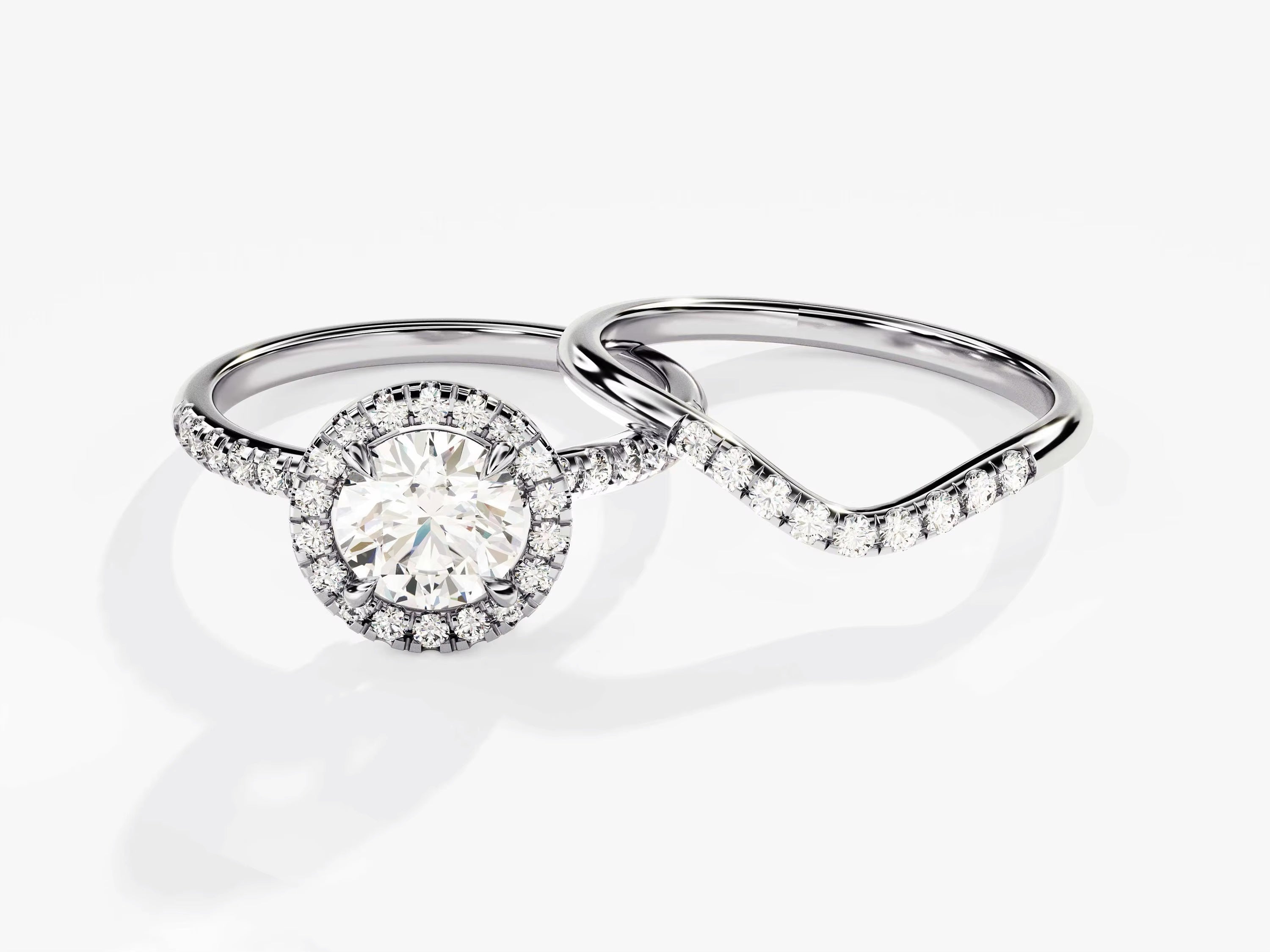 Vintage Halo Moissanite Diamond Bridal Set with Curved Wedding Band – ApolloGem
