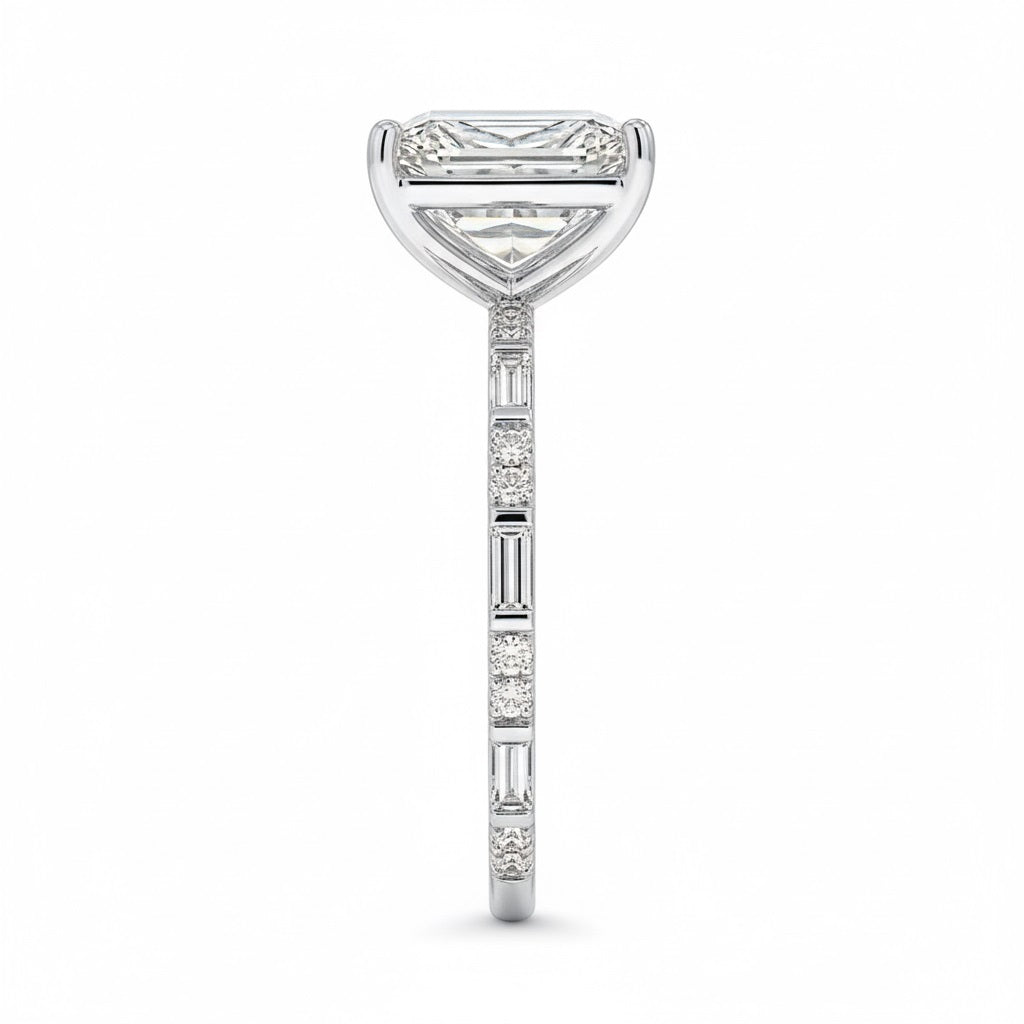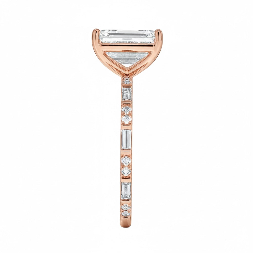 Emerald-Cut Engagement Ring with Baguette and Round Pavé Band – ApolloGem