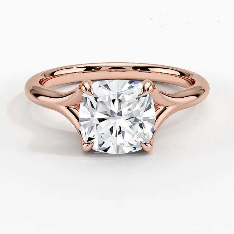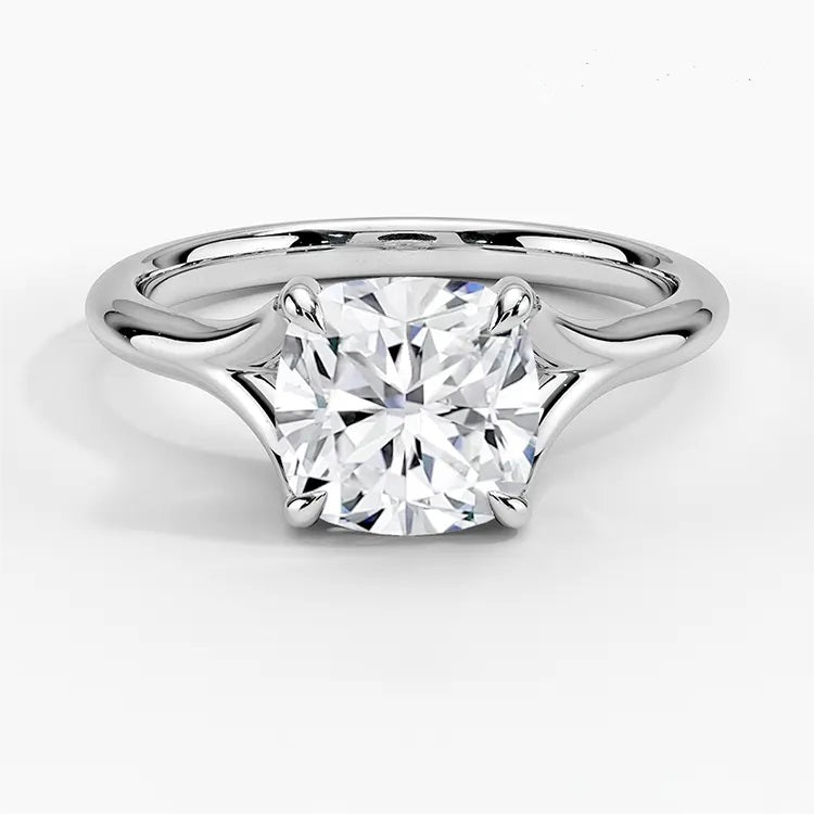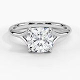 Cushion-Cut Split Shank Solitaire Moissanite Engagement Ring