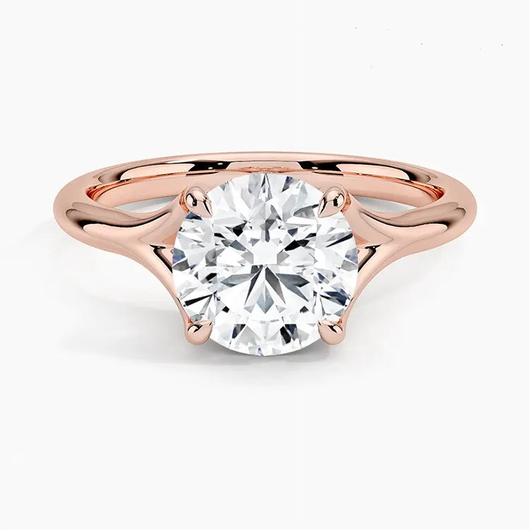 Round-Cut Split Shank Solitaire Moissanite Engagement Ring