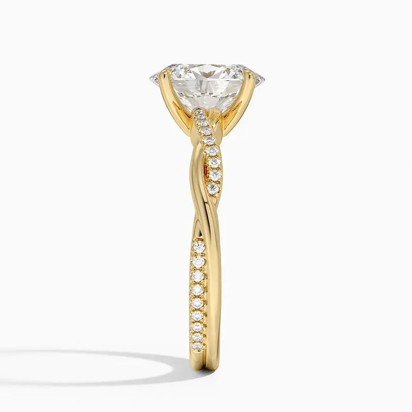 - Twisted Pave Band: The pave setting features small moissanite stones intricately set along the twisted band, adding extra sparkle and enhancing the overall radiance of the ring.