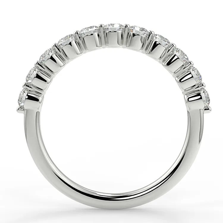 The Elegant Wedding Band Lumia is a beautiful choice for those who appreciate a blend of classic elegance and modern design. This exquisite band features a design that adds a unique and contemporary touch, while the round-cut stones provide exceptional brilliance and sparkle.