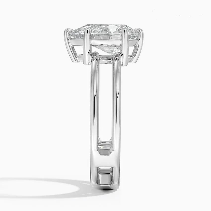 Pear-Cut Solitaire Double Band Moissanite Engagement Ring