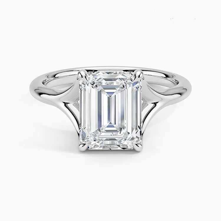 Emerald-Cut Split Shank Solitaire Moissanite Engagement Ring