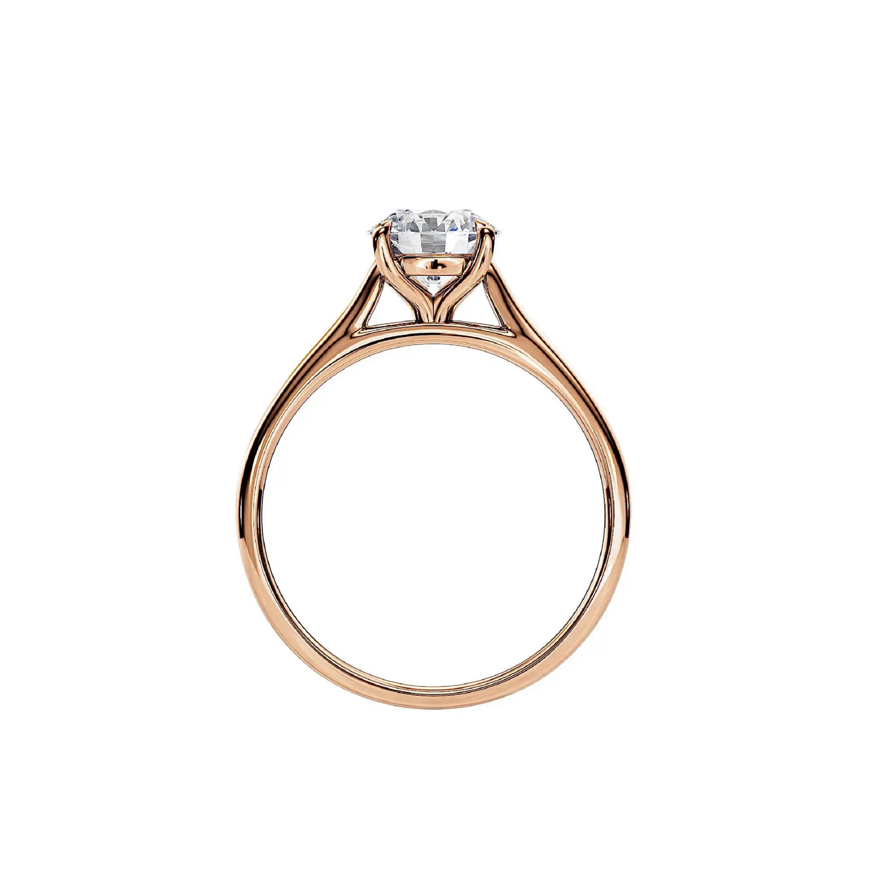 Gold Band: Available in yellow gold, white gold, or rose gold, the band is meticulously crafted to perfection, providing a timeless yet contemporary look that beautifully complements the round-cut center stone.