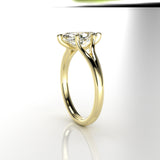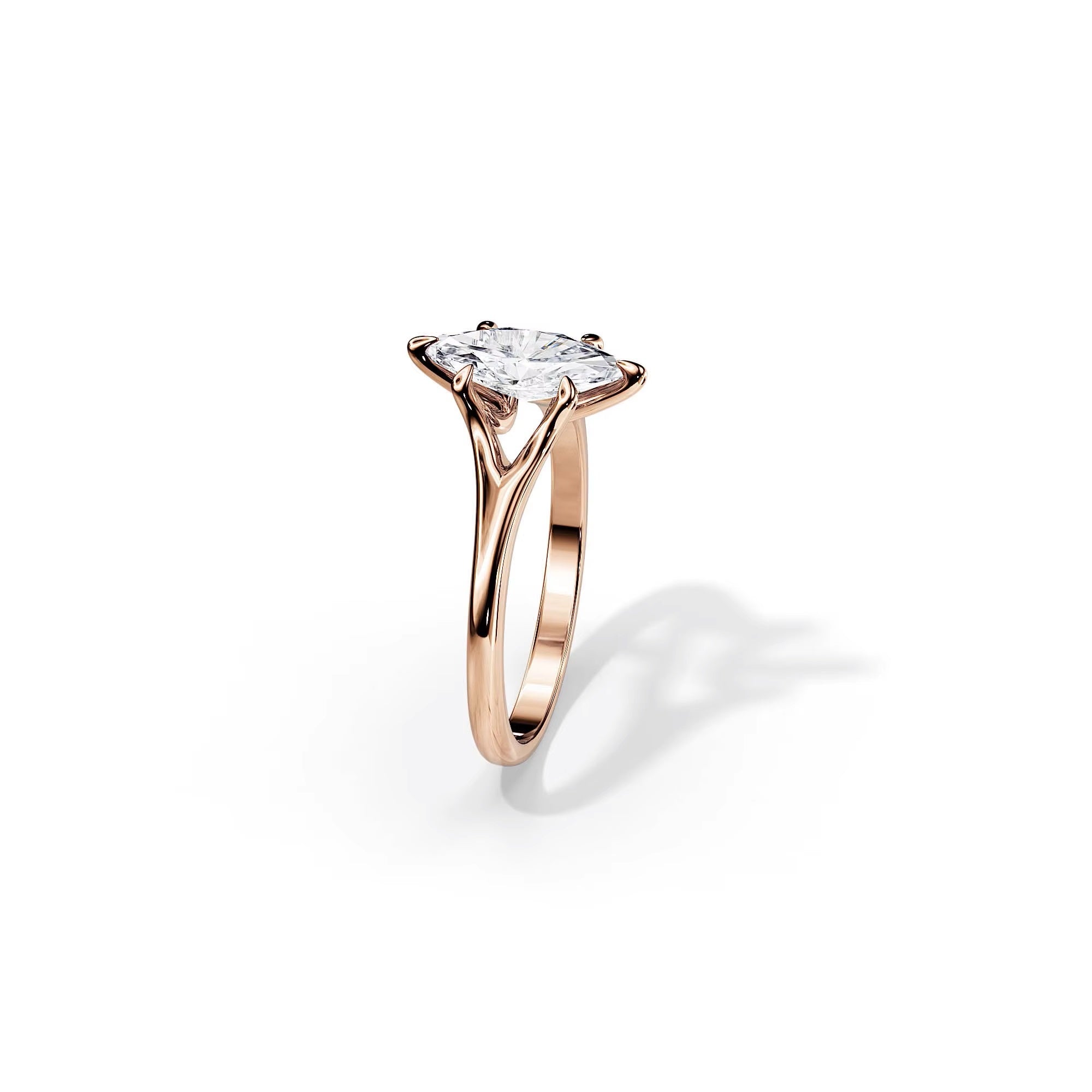 Gold Band: Available in yellow gold, white gold, or rose gold, the band is meticulously crafted to perfection, providing a timeless yet contemporary look that beautifully complements the radiant cut center stone.