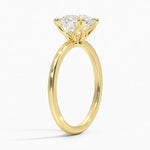 Gold Band: Available in yellow gold, white gold, or rose gold, the band is meticulously crafted to perfection, providing a timeless yet contemporary look that beautifully complements the round-cut center stone.