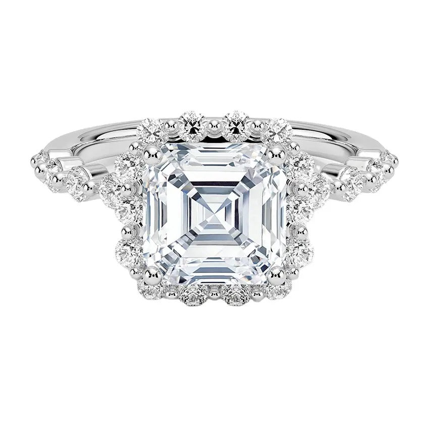 Asscher Cut Moissanite Engagement Ring with Halo – ApolloGem