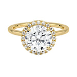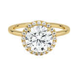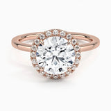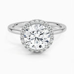 Discover the elegance of our Halo Round Engagement Ring featuring a stunning ApolloGem Moissanite center stone. This exquisite ring is designed to captivate with its round-cut moissanite, encircled by a halo of smaller moissanite stones, creating a dazzling display of brilliance.