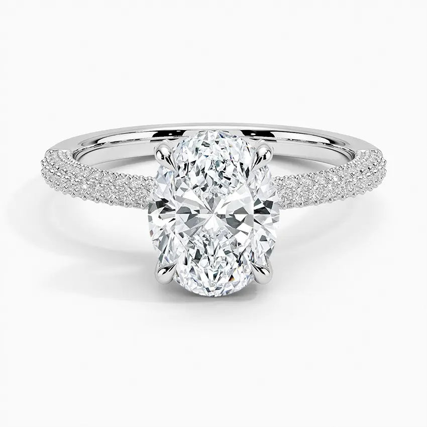 Luxury Fashion Oval Cut Moissanite Diamond Ring with Three-Row Micro-Pave Band - ApolloGem
