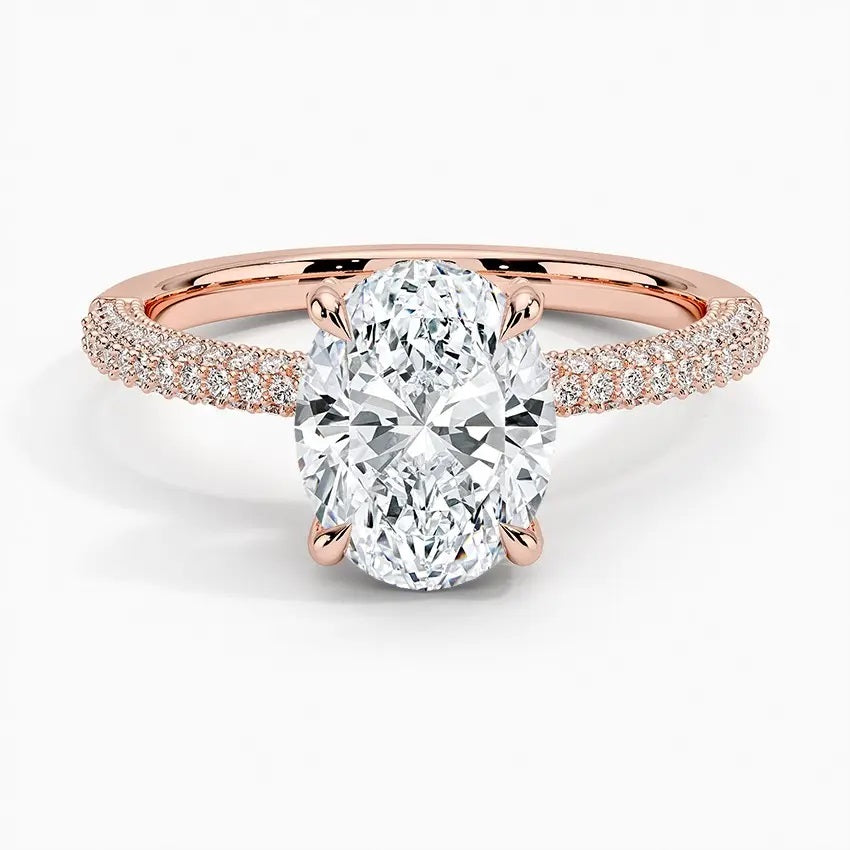 Luxury Fashion Oval Cut Moissanite Diamond Ring with Three-Row Micro-Pave Band