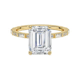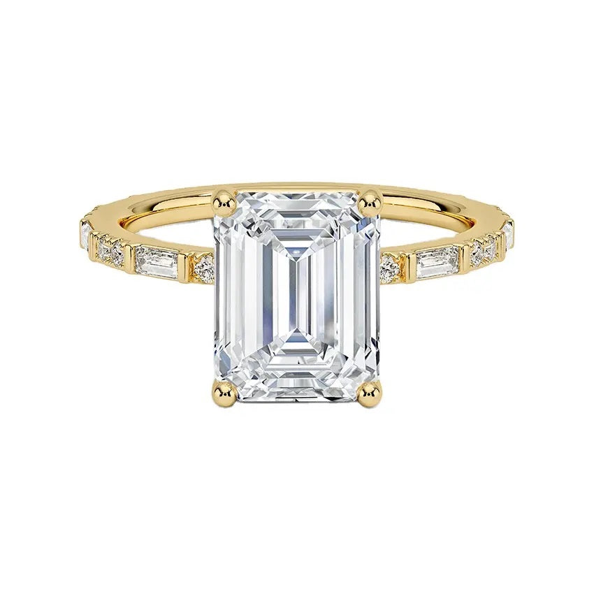 Elevate your engagement with our Emerald-Cut Engagement Ring with Baguette and Round Pavé Band, featuring dazzling Emerald-cut moissanite. Expertly crafted by ApolloGem, this exquisite ring showcases a contemporary design, highlighting the pure brilliance of the moissanite stone. Made from premium gold, this Emerald-cut engagement ring epitomizes luxury and elegance, making it the perfect symbol of your enduring love.