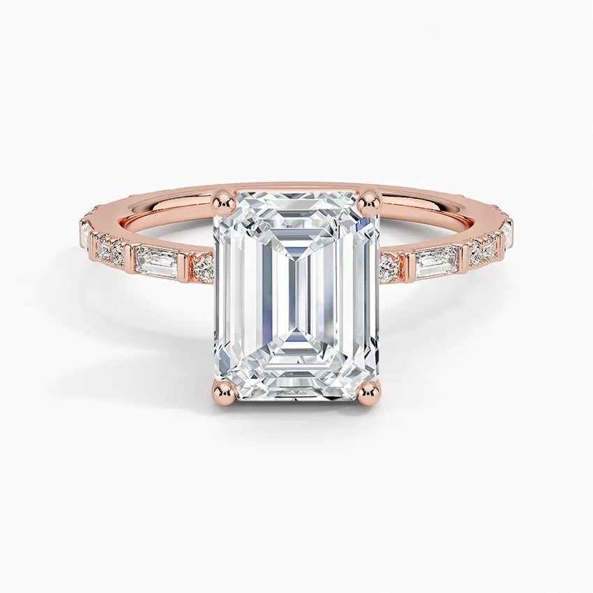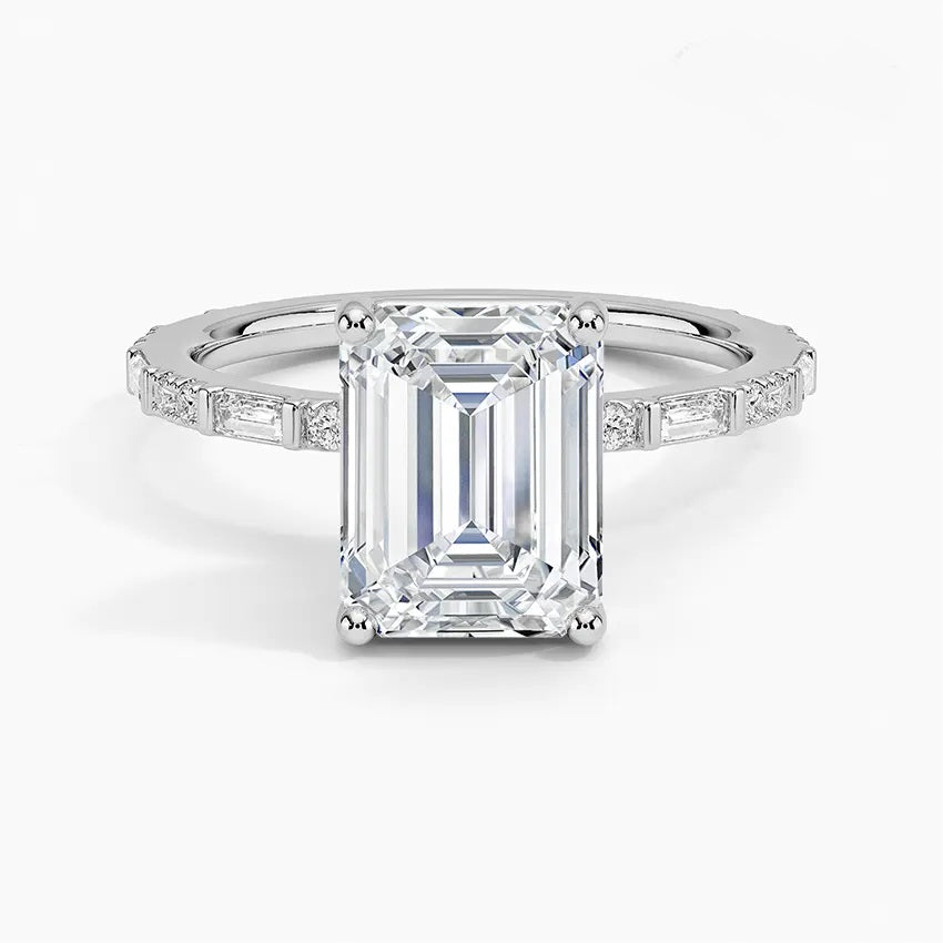 Emerald-Cut Engagement Ring with Baguette and Round Pavé Band – ApolloGem