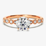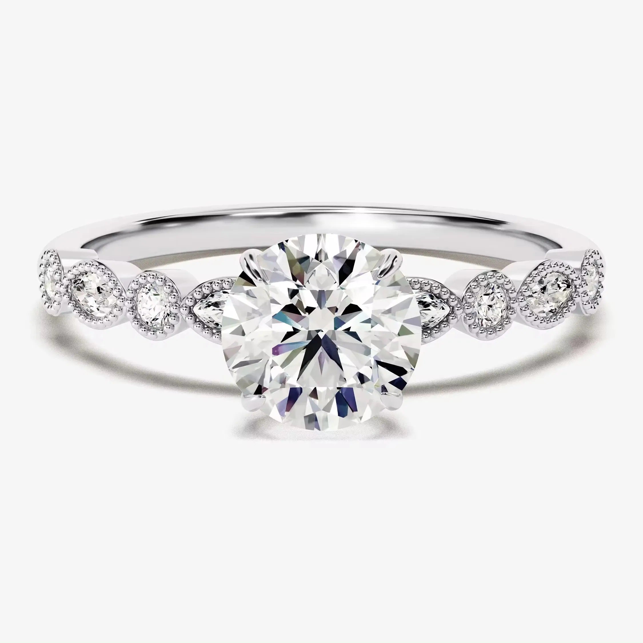 Round Cut Engagement Ring with Fancy Pavé Band - ApolloGem