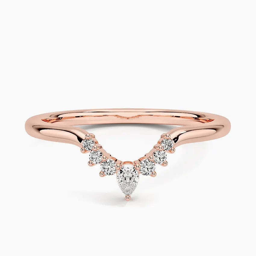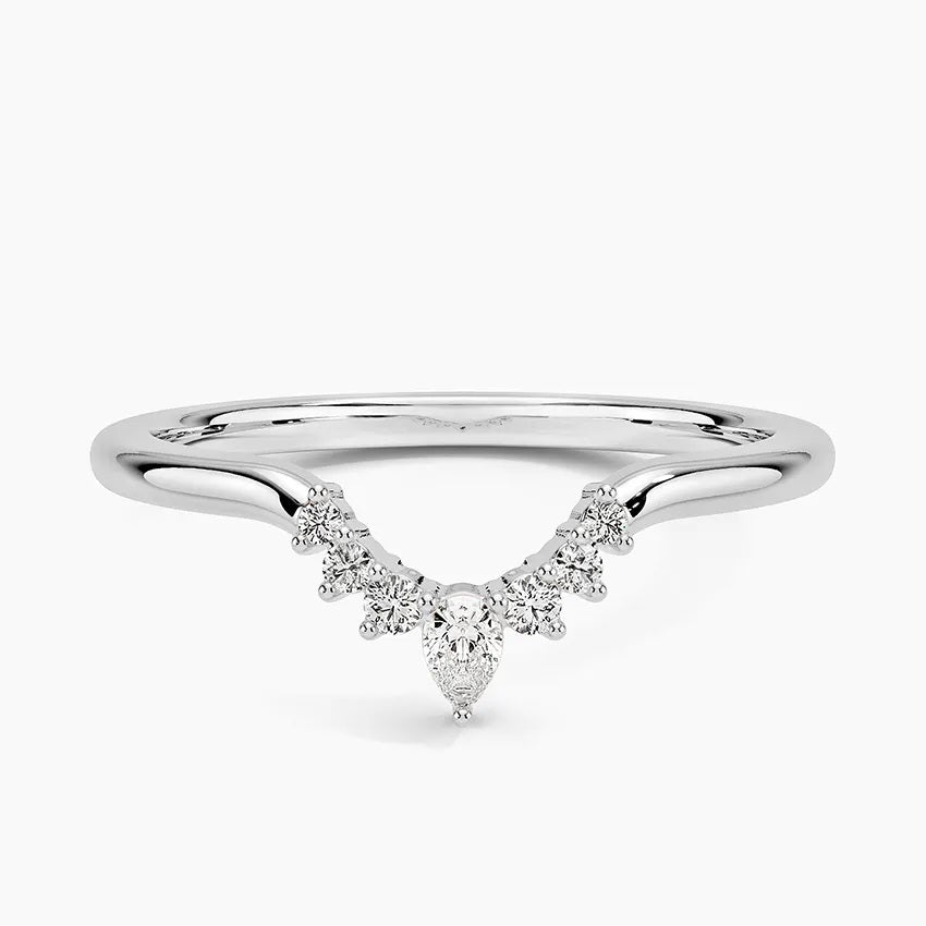 Elegant Pear-Cut Lab Diamond Moissanite wedding band in White, Yellow, or Rose Gold