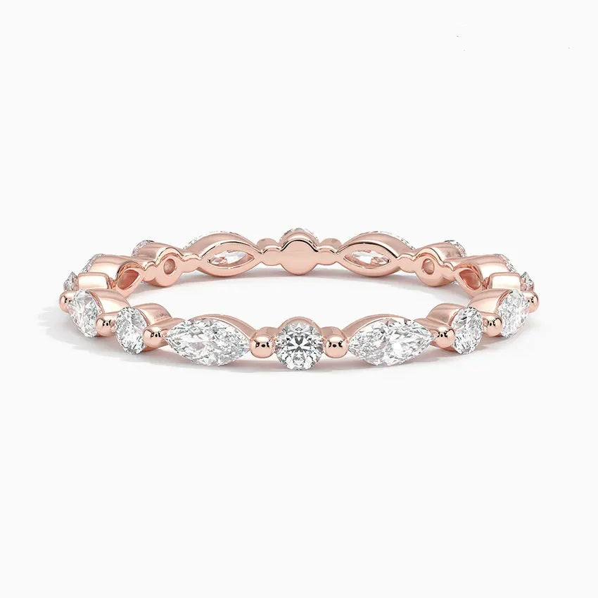 Whether you're celebrating a wedding or looking for a meaningful gift, the Eternity Marquise Round Pave Wedding Band by ApolloGem is the ideal choice. Its timeless design ensures it will be cherished for generations.