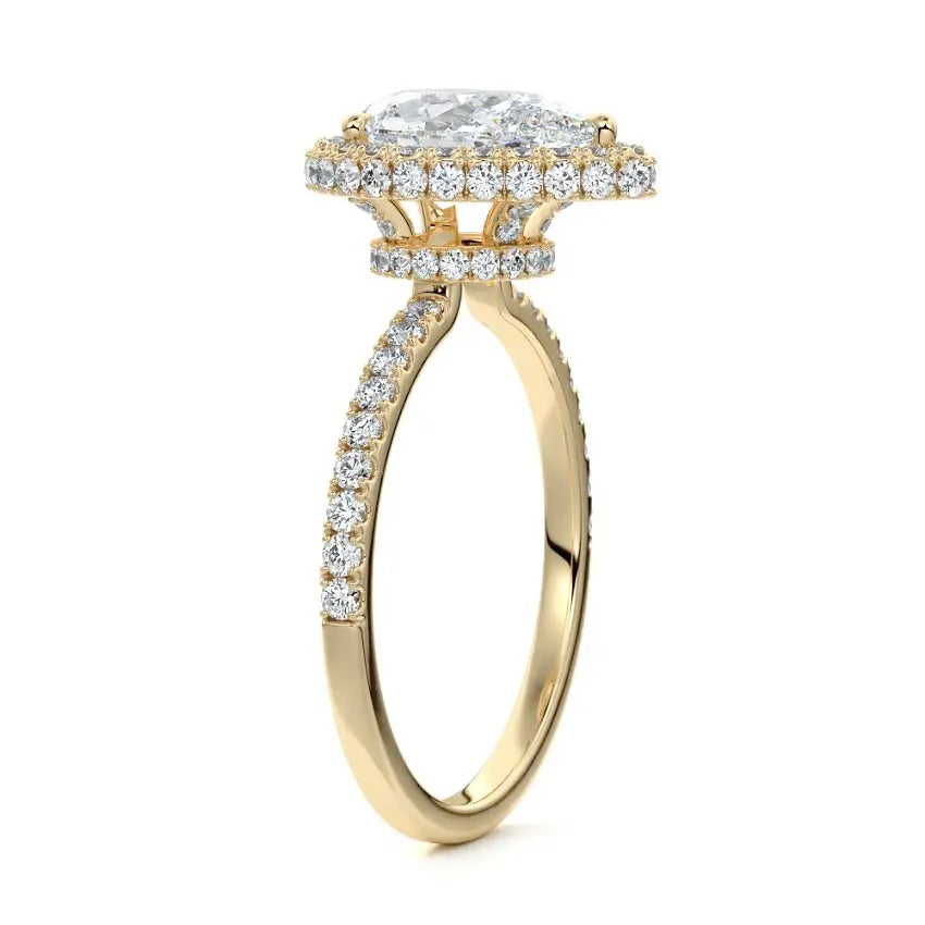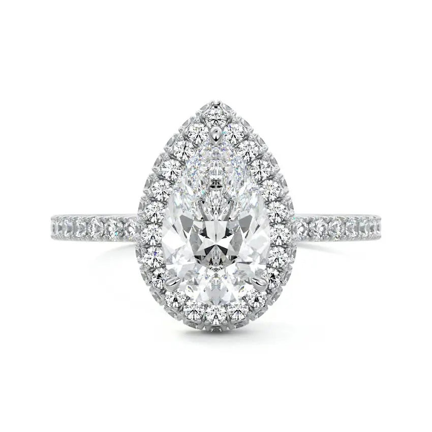 Pear-Cut Halo Moissanite Engagement Ring with Extra Hidden Halo