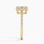 Gold Band: Available in yellow gold, white gold, or rose gold, the band is meticulously crafted to perfection, providing a timeless yet contemporary look that complements the radiant cut center stone beautifully.