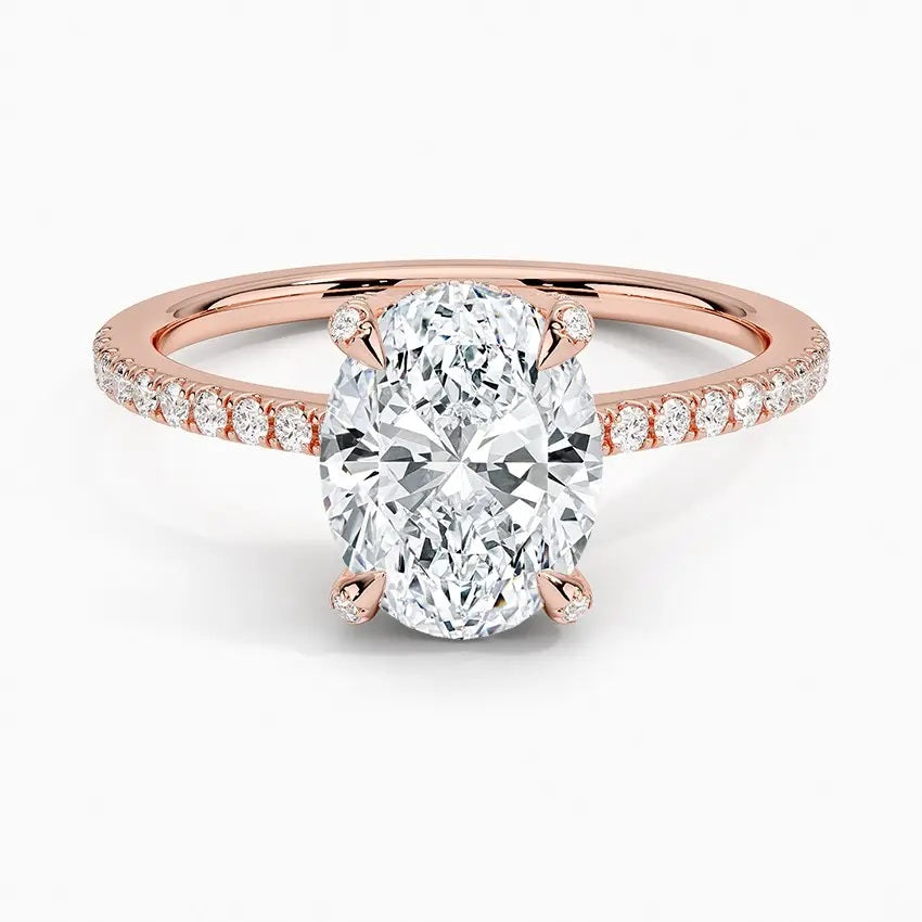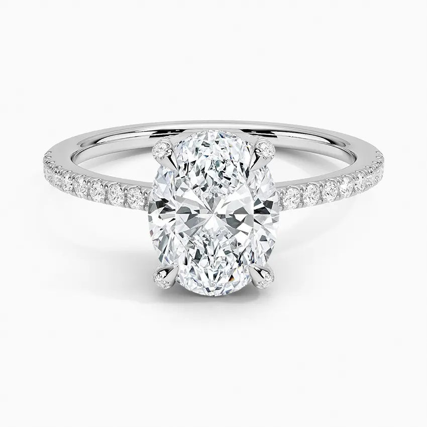 Oval-Cut Hidden Halo Moissanite Engagement Ring with Pave Band and Hidden Halo – ApolloGem