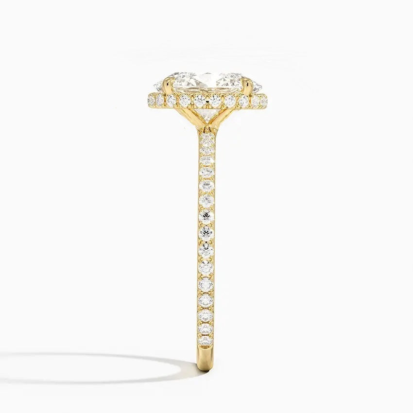 Elevate your engagement with our Oval Hidden Halo Cut Engagement Ring, featuring a dazzling Oval cut Moissanite. Expertly crafted by ApolloGem, this exquisite ring showcases a pave band and a Single hidden halo that enhances its brilliance and sophistication. Made from premium gold, this Oval-cut engagement ring epitomizes luxury and elegance, making it the perfect symbol of your enduring love.