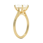 Hidden Halo: The hidden halo design adds a touch of surprise and additional brilliance, with small moissanite stones set underneath the central stone, ensuring the light is captured from all angles.