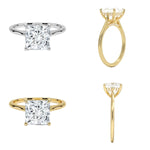Gold Band: Available in yellow gold, white gold, or rose gold, the band is meticulously crafted to perfection, providing a timeless yet contemporary look that beautifully complements the princess-cut center stone.