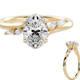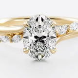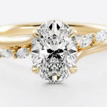 Oval-Cut Moissanite Engagement Ring with Pavé Band and Two Marquise Side Stones – ApolloGem