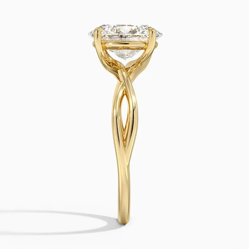 Twisted Gold Band: The band is crafted from high-quality gold and features a unique twisted design that adds a contemporary touch to the classic solitaire setting. Available in yellow gold, white gold, or rose gold, the twisted band provides a modern and stylish look that complements the central stone perfectly.