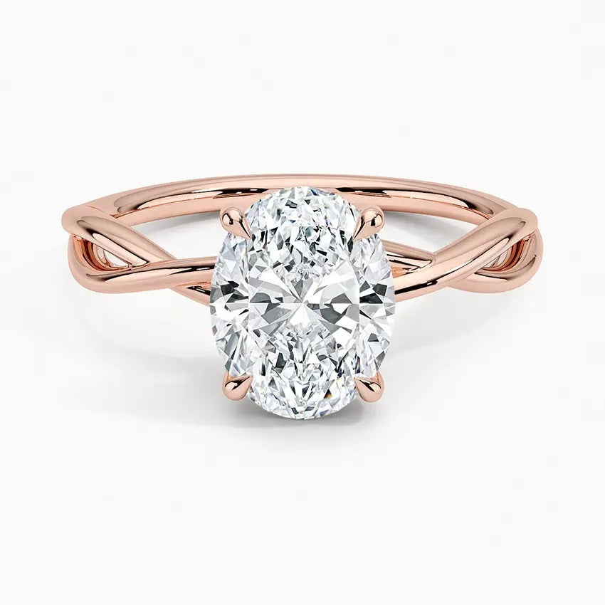 Celebrate your love with our elegant Oval-Cut Solitaire Moissanite Engagement Twisted Band. Expertly crafted by ApolloGem, this stunning ring features a beautiful oval-cut moissanite set in a unique twisted gold band, embodying timeless elegance and modern sophistication.