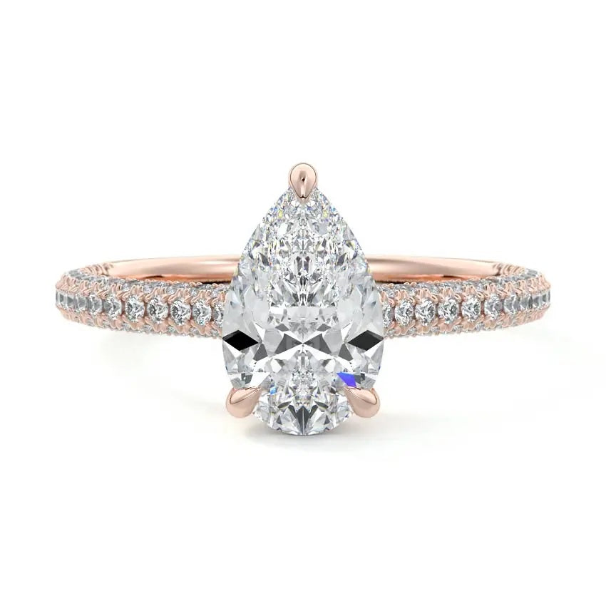 Pear-Shaped Engagement Ring with Three-Row Micro-Pave Band – ApolloGem