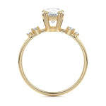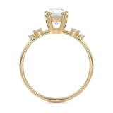 Round Side Stones: Flanking the central moissanite are round side stones, which add an extra layer of elegance and sparkle, creating a harmonious and sophisticated look.