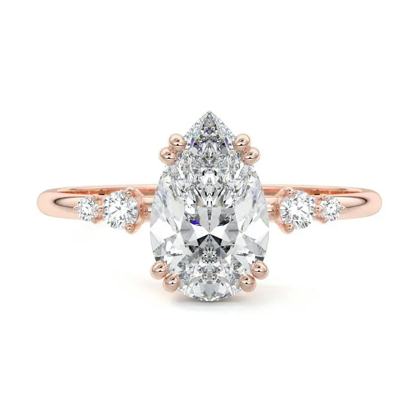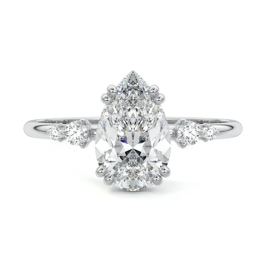 Pear-Cut Engagement Ring with Round Side Stones – ApolloGem