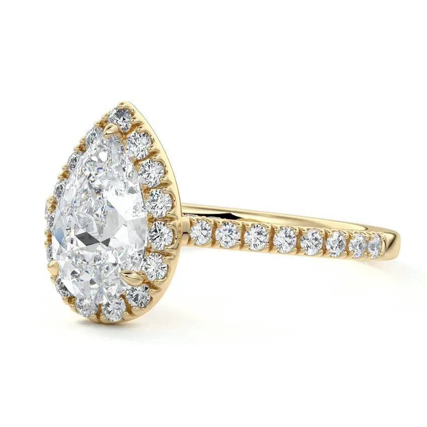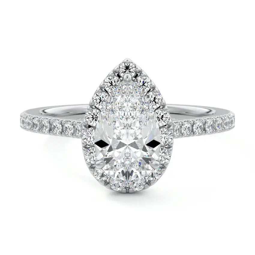 Pear-Cut Halo Moissanite Engagement Ring with Pave - ApolloGem